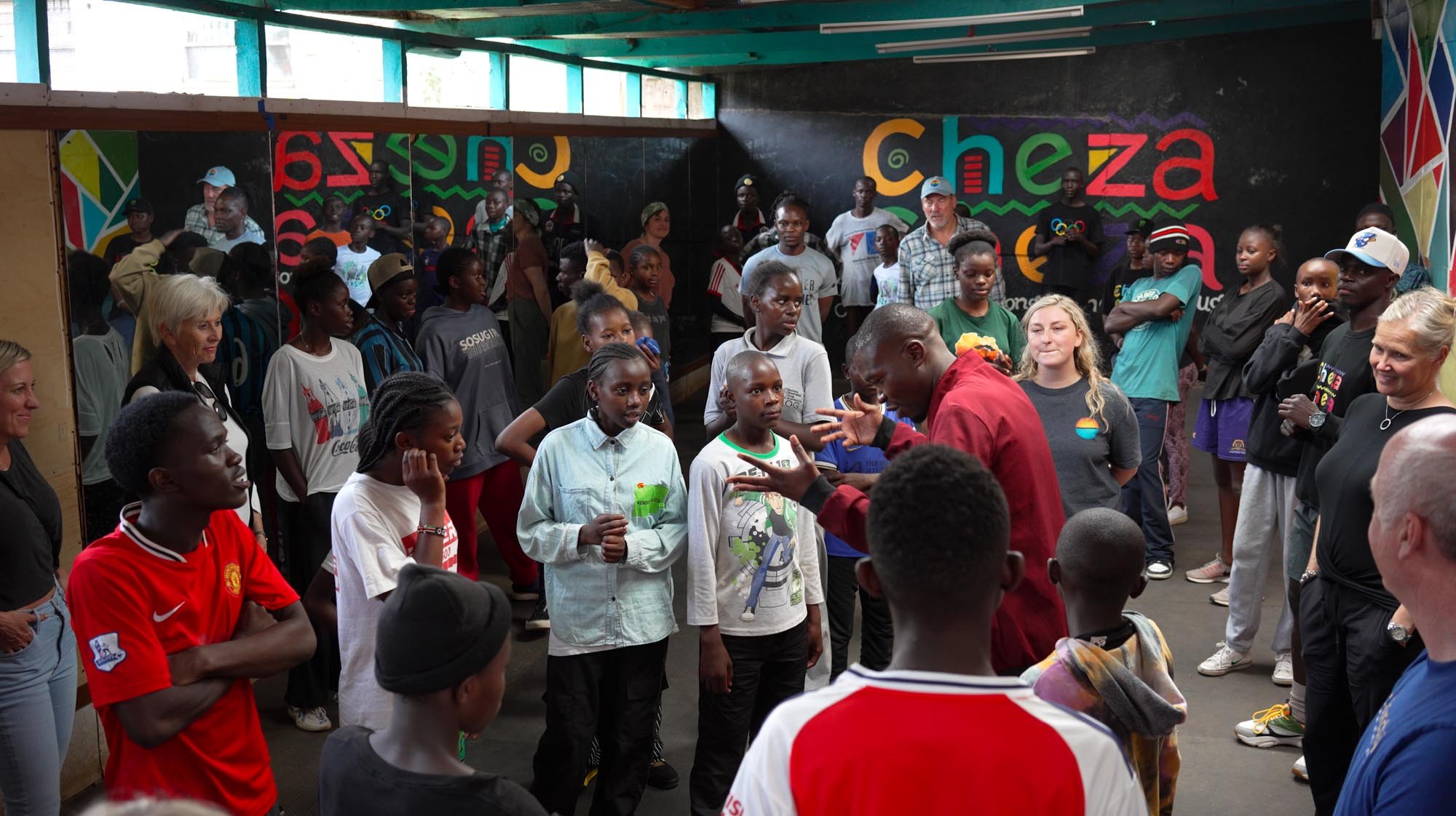 Rising from Kibera's streets to international acclaim, he's earned the Kenyan Youth Service Award and Global Changemaker Prize. As a Global Youth Ambassador for Education, Franco brings passion to conferences worldwide. ChezaCheza ("Play Dance" in Swahili) turns school halls and a sunlit courtyard into sanctuaries of drums, dance, and laughter following choreography designed to process trauma and build resilience.